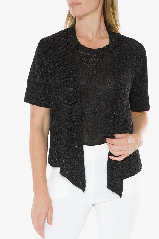 Short Sleeve Lurex Cardigan Black