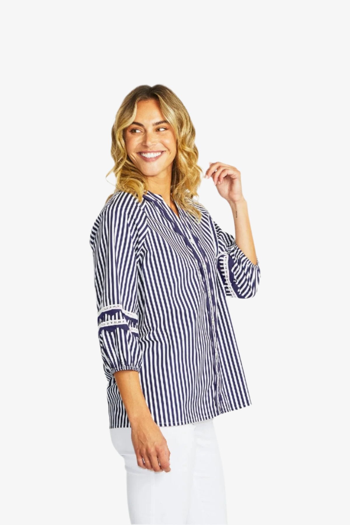 Add a playful touch to your wardrobe with the Delia Ric Rac Blouse, featuring charming ric rac trim for a unique twist on a classic silhouette.